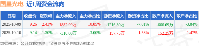 资金流向数据方面,本周国星光电主力资金合计净流入1572.99万元,游资资金合计净流出1058.55万元,散户资金合计净流出514.44万元。本周资金流向一览见下表:
