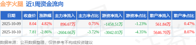 沪深股通持股方面,截止2025年10月10日收盘,金字火腿深股通持股数为292.88万股,占流通股比为26.0%。