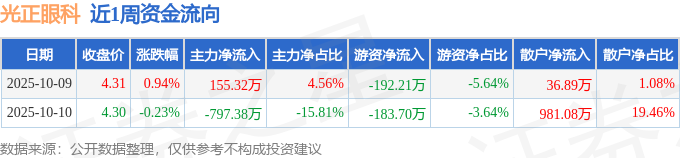资金流向数据方面,本周光正眼科主力资金合计净流出642.06万元,游资资金合计净流出375.91万元,散户资金合计净流入1017.97万元。本周资金流向一览见下表: