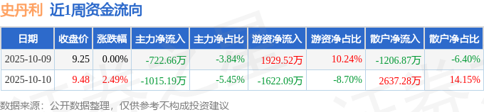 沪深股通持股方面,截止2025年10月10日收盘,史丹利深股通持股数为2692.2万股,占流通股比为264.0%。