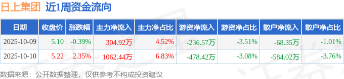 资金流向数据方面,本周日上集团主力资金合计净流入1367.36万元,游资资金合计净流出714.99万元,散户资金合计净流出652.37万元。本周资金流向一览见下表: