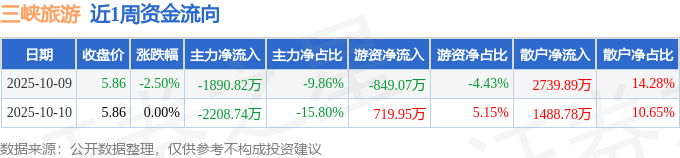 资金流向数据方面,本周三峡旅游主力资金合计净流出4099.55万元,游资资金合计净流出129.12万元,散户资金合计净流入4228.67万元。本周资金流向一览见下表: