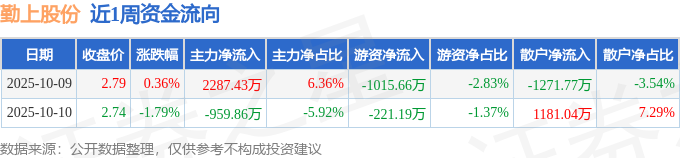 资金流向数据方面,本周勤上股份主力资金合计净流入1327.57万元,游资资金合计净流出1236.85万元,散户资金合计净流出90.73万元。本周资金流向一览见下表: