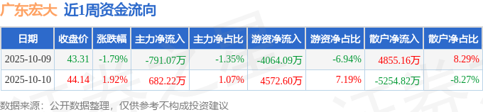 资金流向数据方面,本周广东宏大主力资金合计净流出108.85万元,游资资金合计净流入508.51万元,散户资金合计净流出399.66万元。本周资金流向一览见下表: