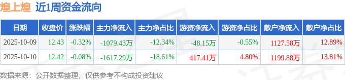 资金流向数据方面,本周煌上煌主力资金合计净流出2696.72万元,游资资金合计净流入369.26万元,散户资金合计净流入2327.47万元。本周资金流向一览见下表: