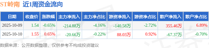 资金流向数据方面,本周ST岭南主力资金合计净流出235.54万元,游资资金合计净流出52.56万元,散户资金合计净流入288.09万元。本周资金流向一览见下表: