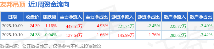资金流向数据方面,本周友邦吊顶主力资金合计净流入585.15万元,游资资金合计净流出75.75万元,散户资金合计净流出509.4万元。本周资金流向一览见下表: