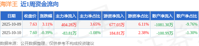 沪深股通持股方面,截止2025年10月10日收盘,海洋王深股通持股数为614.23万股,占流通股比为107.0%。