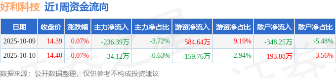 资金流向数据方面,本周好利科技主力资金合计净流出270.51万元,游资资金合计净流入424.89万元,散户资金合计净流出154.37万元。本周资金流向一览见下表: