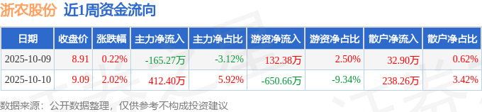 资金流向数据方面,本周浙农股份主力资金合计净流入247.13万元,游资资金合计净流出518.28万元,散户资金合计净流入271.16万元。本周资金流向一览见下表: