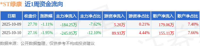 资金流向数据方面,本周*ST绿康主力资金合计净流出429.3万元,游资资金合计净流入95.13万元,散户资金合计净流入334.17万元。本周资金流向一览见下表: