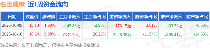 沪深股通持股方面,截止2025年10月10日收盘,名臣健康深股通持股数为187.17万股,占流通股比为71.0%。