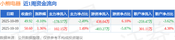 资金流向数据方面,本周小熊电器主力资金合计净流出76.41万元,游资资金合计净流入34.77万元,散户资金合计净流入41.64万元。本周资金流向一览见下表: