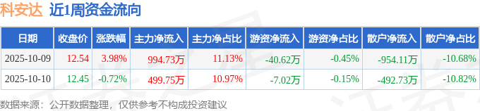资金流向数据方面,本周科安达主力资金合计净流入1494.48万元,游资资金合计净流出47.64万元,散户资金合计净流出1446.84万元。本周资金流向一览见下表: