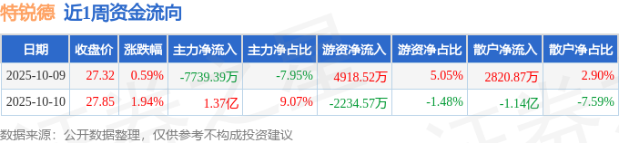 资金流向数据方面,本周特锐德主力资金合计净流入5935.09万元,游资资金合计净流入2683.95万元,散户资金合计净流出8619.05万元。本周资金流向一览见下表:
