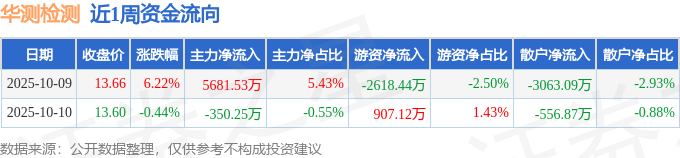 沪深股通持股方面,截止2025年10月10日收盘,华测检测深股通持股数为2.37亿股,占流通股比为1653.0%。
