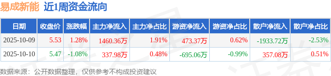 资金流向数据方面,本周易成新能主力资金合计净流入1798.34万元,游资资金合计净流出221.7万元,散户资金合计净流出1576.64万元。本周资金流向一览见下表: