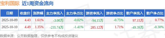 资金流向数据方面,本周宝利国际主力资金合计净流出238.74万元,游资资金合计净流入190.97万元,散户资金合计净流入47.77万元。本周资金流向一览见下表: