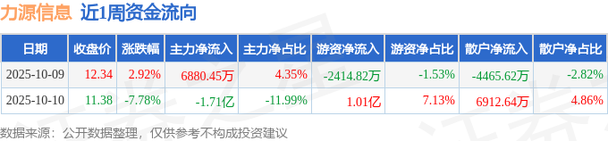 资金流向数据方面,本周力源信息主力资金合计净流出1.02亿元,游资资金合计净流入7730.13万元,散户资金合计净流入2447.01万元。本周资金流向一览见下表: