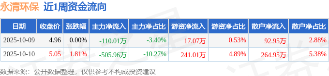 资金流向数据方面,本周永清环保主力资金合计净流出615.97万元,游资资金合计净流入258.08万元,散户资金合计净流入357.9万元。本周资金流向一览见下表: