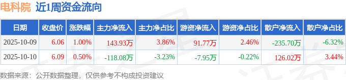 资金流向数据方面,本周电科院主力资金合计净流入25.85万元,游资资金合计净流入83.82万元,散户资金合计净流出109.67万元。本周资金流向一览见下表: