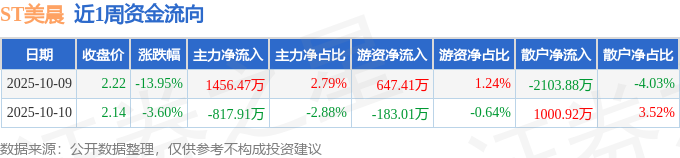资金流向数据方面,本周ST美晨主力资金合计净流入638.56万元,游资资金合计净流入464.41万元,散户资金合计净流出1102.97万元。本周资金流向一览见下表: