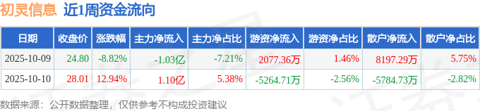 资金流向数据方面,本周初灵信息主力资金合计净流入774.79万元,游资资金合计净流出3187.35万元,散户资金合计净流入2412.56万元。本周资金流向一览见下表: