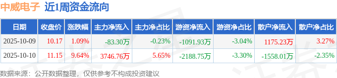 资金流向数据方面,本周中威电子主力资金合计净流入3663.47万元,游资资金合计净流出3280.68万元,散户资金合计净流出382.79万元。本周资金流向一览见下表:
