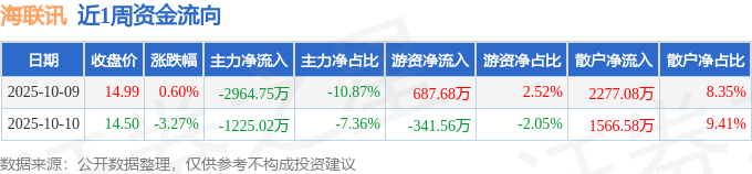 资金流向数据方面,本周海联讯主力资金合计净流出4189.77万元,游资资金合计净流入346.12万元,散户资金合计净流入3843.65万元。本周资金流向一览见下表: