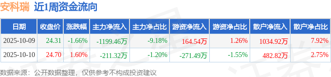 资金流向数据方面,本周安科瑞主力资金合计净流出1410.78万元,游资资金合计净流出106.95万元,散户资金合计净流入1517.74万元。本周资金流向一览见下表: