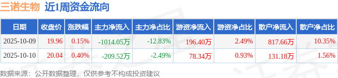 资金流向数据方面,本周三诺生物主力资金合计净流出1223.58万元,游资资金合计净流入274.74万元,散户资金合计净流入948.84万元。本周资金流向一览见下表: