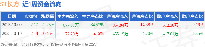 资金流向数据方面,本周ST长方主力资金合计净流出805.11万元,游资资金合计净流入309.75万元,散户资金合计净流入495.35万元。本周资金流向一览见下表: