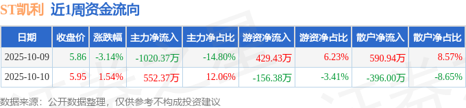 资金流向数据方面,本周ST凯利主力资金合计净流出468.0万元,游资资金合计净流入273.05万元,散户资金合计净流入194.94万元。本周资金流向一览见下表: