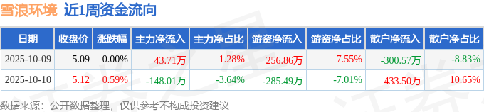 资金流向数据方面,本周雪浪环境主力资金合计净流出104.3万元,游资资金合计净流出28.63万元,散户资金合计净流入132.92万元。本周资金流向一览见下表: