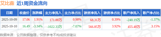 沪深股通持股方面,截止2025年10月10日收盘,艾比森深股通持股数为278.7万股,占流通股比为120.0%。