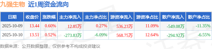 资金流向数据方面,本周九强生物主力资金合计净流出260.98万元,游资资金合计净流入1104.99万元,散户资金合计净流出844.0万元。本周资金流向一览见下表: