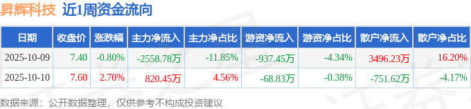 资金流向数据方面,本周昇辉科技主力资金合计净流出1738.32万元,游资资金合计净流出1006.29万元,散户资金合计净流入2744.61万元。本周资金流向一览见下表: