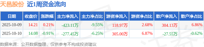 沪深股通持股方面,截止2025年10月10日收盘,天邑股份深股通持股数为59.56万股,占流通股比为27.0%。