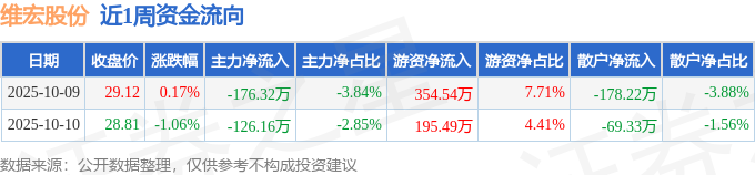 资金流向数据方面,本周维宏股份主力资金合计净流出302.48万元,游资资金合计净流入550.03万元,散户资金合计净流出247.55万元。本周资金流向一览见下表: