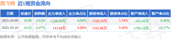资金流向数据方面,本周英飞特主力资金合计净流出1104.4万元,游资资金合计净流入2912.36万元,散户资金合计净流出1807.96万元。本周资金流向一览见下表: