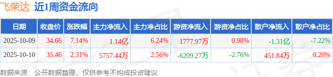 沪深股通持股方面,截止2025年10月10日收盘,飞荣达深股通持股数为445.48万股,占流通股比为114.0%。