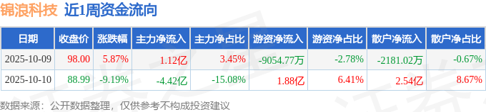 资金流向数据方面,本周锦浪科技主力资金合计净流出3.29亿元,游资资金合计净流入9718.91万元,散户资金合计净流入2.32亿元。本周资金流向一览见下表: