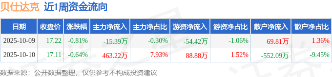 资金流向数据方面,本周贝仕达克主力资金合计净流入447.83万元,游资资金合计净流入34.45万元,散户资金合计净流出482.28万元。本周资金流向一览见下表: