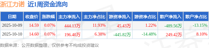 资金流向数据方面,本周浙江力诺主力资金合计净流入640.53万元,游资资金合计净流出400.39万元,散户资金合计净流出240.13万元。本周资金流向一览见下表: