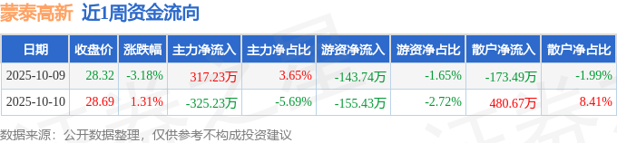 资金流向数据方面,本周蒙泰高新主力资金合计净流出8.01万元,游资资金合计净流出299.17万元,散户资金合计净流入307.18万元。本周资金流向一览见下表: