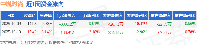 资金流向数据方面,本周中胤时尚主力资金合计净流出211.21万元,游资资金合计净流入166.54万元,散户资金合计净流入44.68万元。本周资金流向一览见下表: