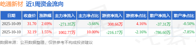 资金流向数据方面,本周屹通新材主力资金合计净流入731.42万元,游资资金合计净流入92.48万元,散户资金合计净流出823.9万元。本周资金流向一览见下表: