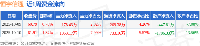 资金流向数据方面,本周恒宇信通主力资金合计净流入1231.6万元,游资资金合计净流入1002.54万元,散户资金合计净流出2234.14万元。本周资金流向一览见下表: