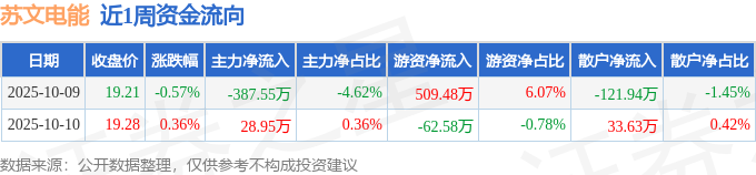 资金流向数据方面,本周苏文电能主力资金合计净流出358.6万元,游资资金合计净流入446.91万元,散户资金合计净流出88.31万元。本周资金流向一览见下表:
