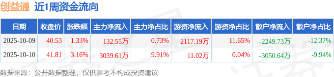 资金流向数据方面,本周创益通主力资金合计净流入3172.16万元,游资资金合计净流入2128.21万元,散户资金合计净流出5300.37万元。本周资金流向一览见下表: